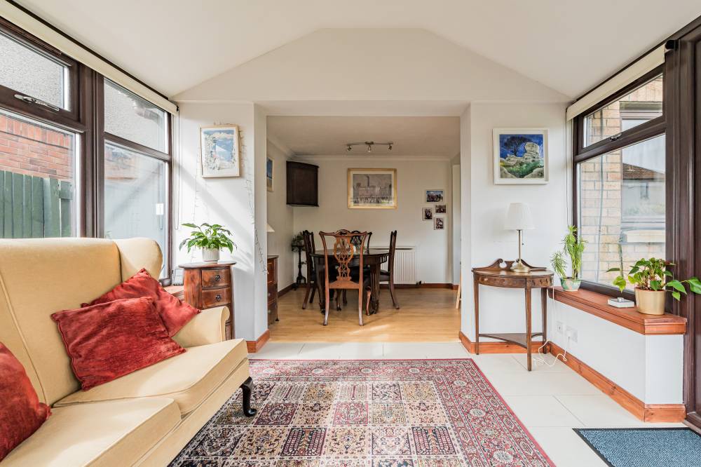 The accommodation opens with a welcoming entrance hallway. The lounge is a spacious bay-fronted room, providing an ideal setting for relaxing. To the rear, the kitchen/diner is well arranged with a range of freestanding white goods, partial panelling to match the worktops, under-unit lighting, and a breakfast bar. There is ample space for a large dining table and chairs, along with a handy understairs storage cupboard. This space flows seamlessly into the extended sunroom, which enjoys a bright triple aspect and French doors leading out to the garden. A practical utility room provides a sink, space for additional freestanding white goods, and extra storage. A partially tiled WC completes the ground floor.