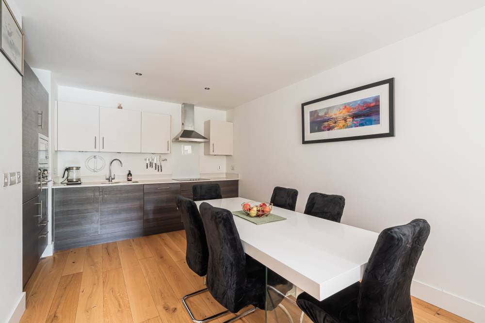 The accommodation which is presented to the market in move-in condition, briefly comprises: secure entry system; welcoming spacious hallway with useful utility and storage cupboard; light and airy reception/dining room with French door; open-plan modern fitted kitchen with integrated appliances; well proportioned double bedroom with fitted wardrobes; and contemporary bathroom with three-piece suite and shower over bath. Further benefits include underfloor gas central heating and double glazing.